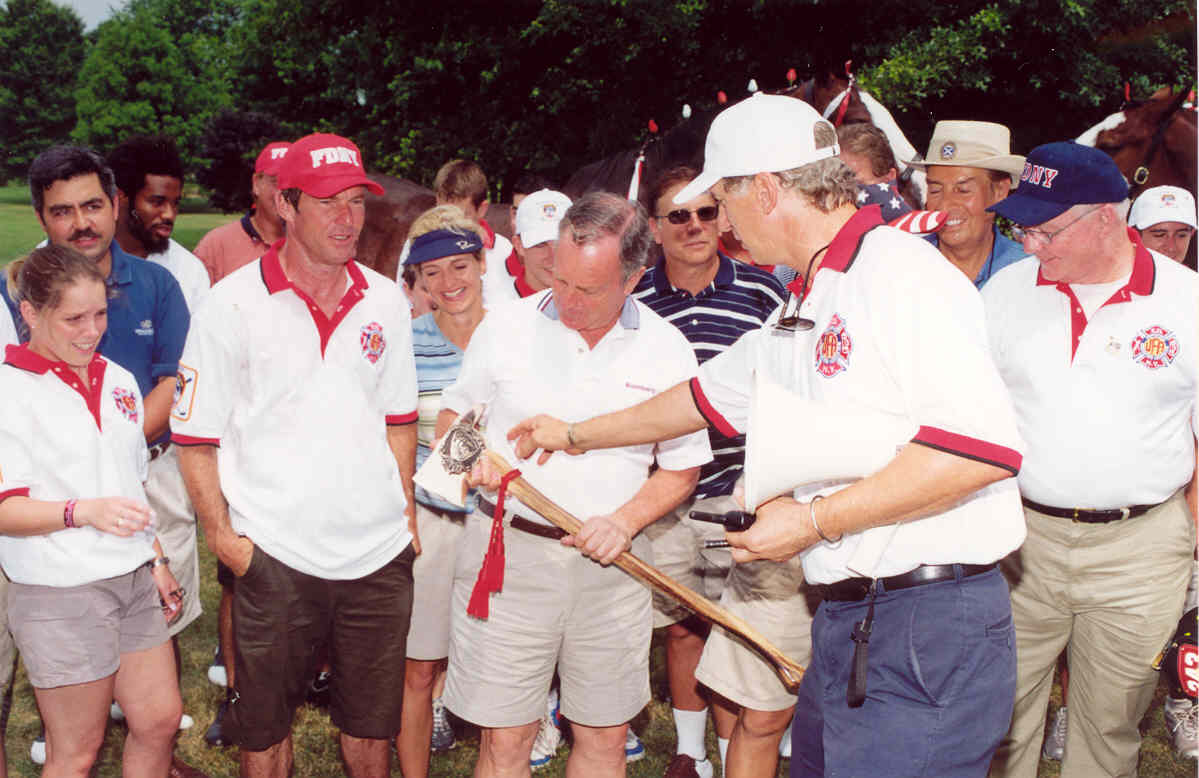 Firefighter Guy Warren, presents Mayor Bloomberg with a commemorative
